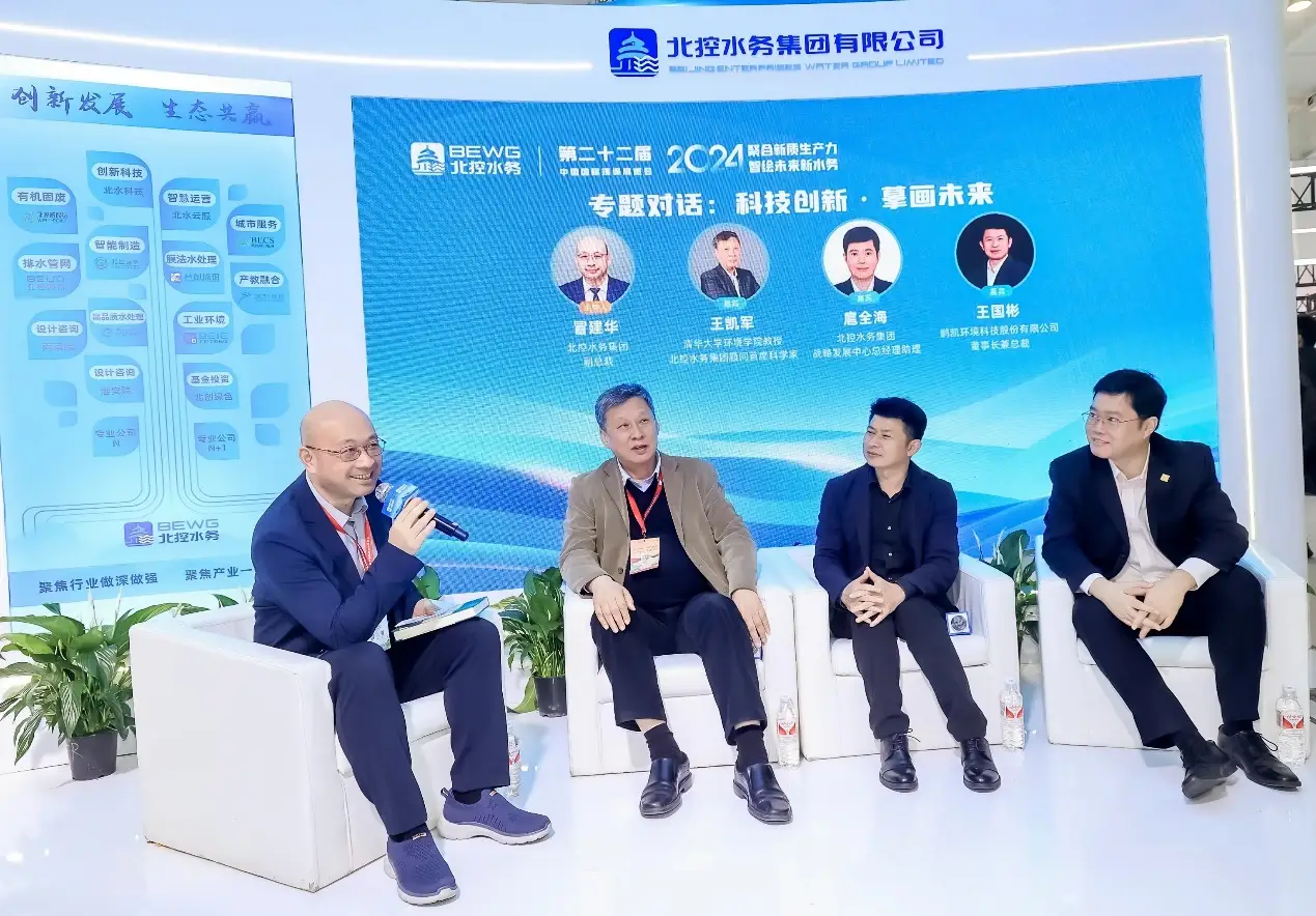 4月11日下午,北控水務集團舉辦“科技創新·摹畫未來”專題對話。對話邀請了清華大學環境學院王凱軍教授,鵬凱環境科技股份有限公司董事長兼總裁王國彬,北控水務集團副總裁冒建華和戰投發展中心總經理助理扈全海,共話未來水務的科技創新和產業變革。