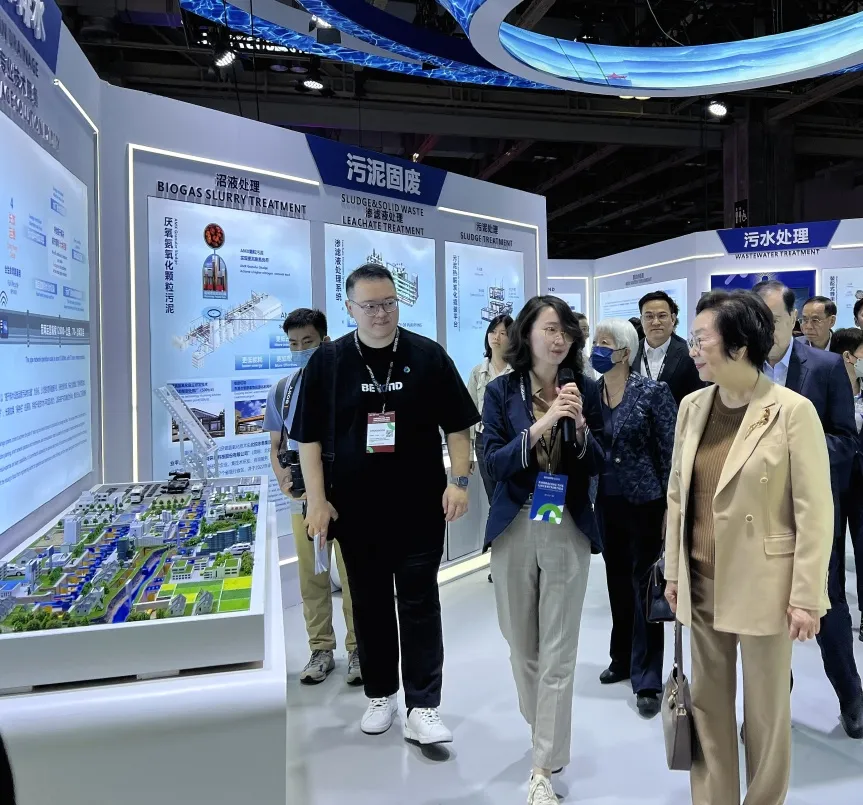 5月25日,中華全國婦女聯合會常務委員、澳門婦女聯合總會永遠會長賀定一女士到北控水務集團展位參觀指導,聽取了集團業務范圍、創新技術和產教融合實踐等展示內容的介紹。